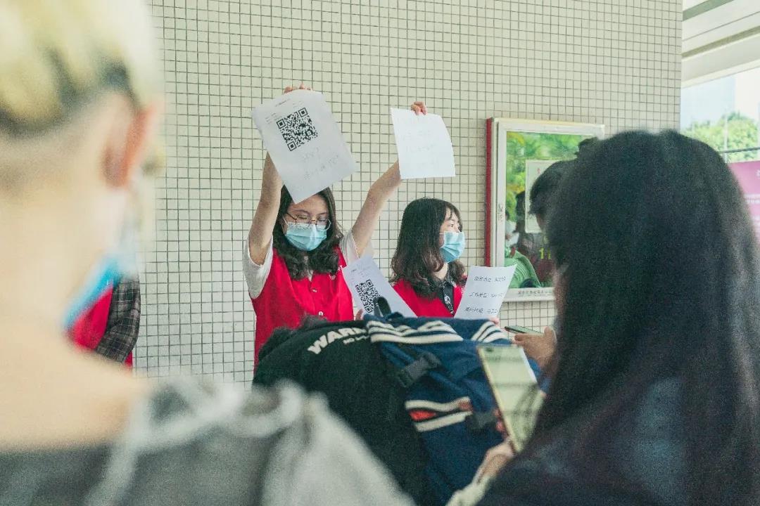 在接種現場,各部門協同配合,確保學生疫苗接種工作安全高效開展,各環節指示引導清晰準確,整個接種流程有序高效,秩序井然。接種現場設置有等候區、登記區、登記備用區、接種區以及留觀區、疑似異常反應處置區等區域。登記區安排有20個登記位,接種區安排有16個接種單元,留觀區設置有600個座位。前來接種的師生須按流程掃碼登記,下載“粵苗”APP進行身份核驗;在登記區填寫健康狀況詢問與醫學建議表,待醫護人員確認符合接種條件后方可進入接種區進行接種;接種后前往留觀區進行30分鐘的觀察無異常后方可離開。