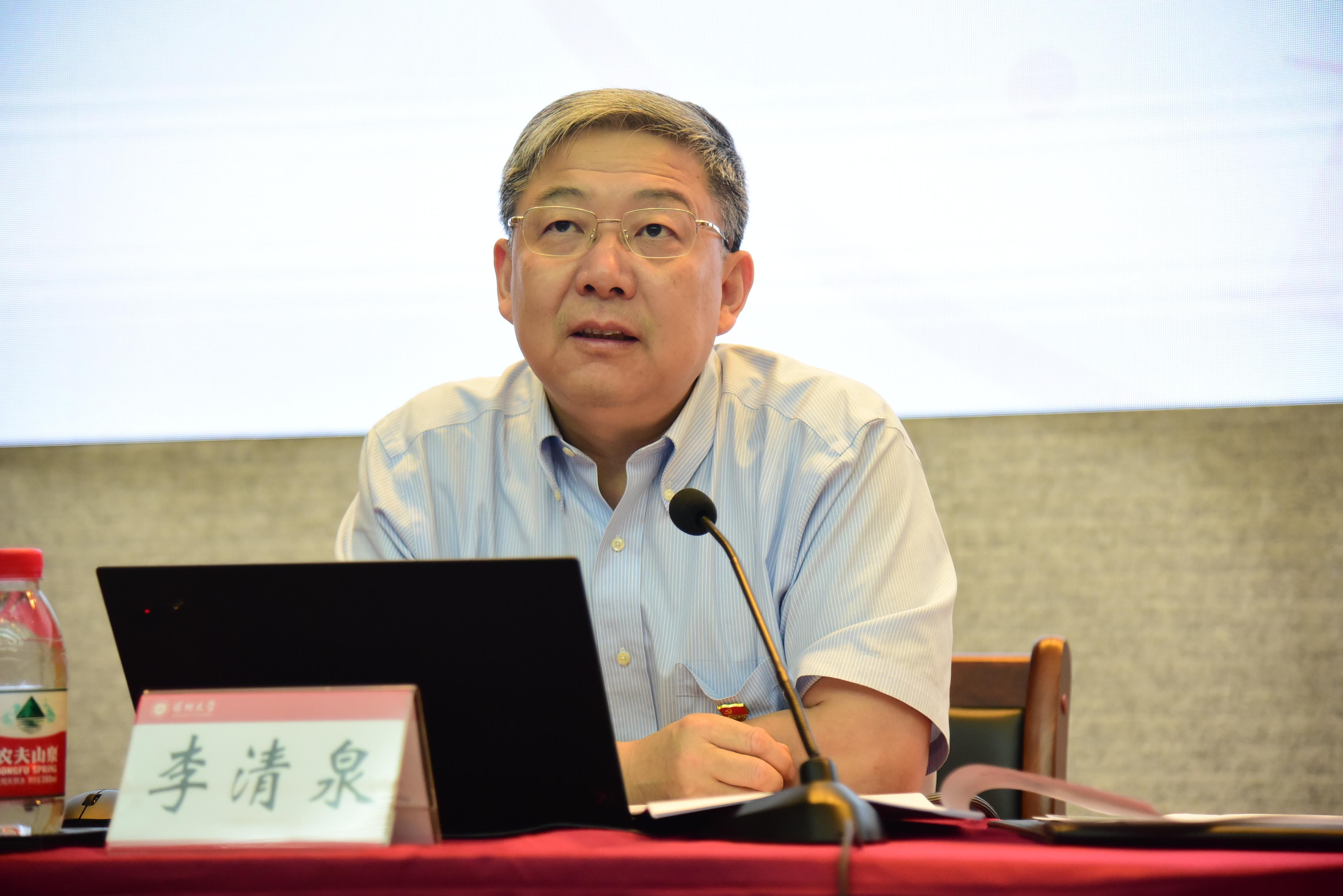 李清泉重點解讀了市黨代會報告中與特區高等教育建設和深大辦學發展息息相關的重要部署。他指出,深大的快速發展是市第六次黨代會以來深圳發展成就的重要組成部分。學校要緊密圍繞本次黨代會報告中提出的對特區高等教育的部署和要求,結合“雙區”發展戰略,將深大“十四五”規劃與深圳的未來發展緊密融合,以“服務需求+打造高峰+學科交叉”的新思路推動若干重大項目;以推動高質量發展為主題,以打造學科高峰為核心,以培養高素質創新創業人才為主線;形成服務重大戰略能力突出、人才培養貢獻卓著、標志成果持續涌現、具有全球競爭力、學科高峰突破增長的深大發展新格局。