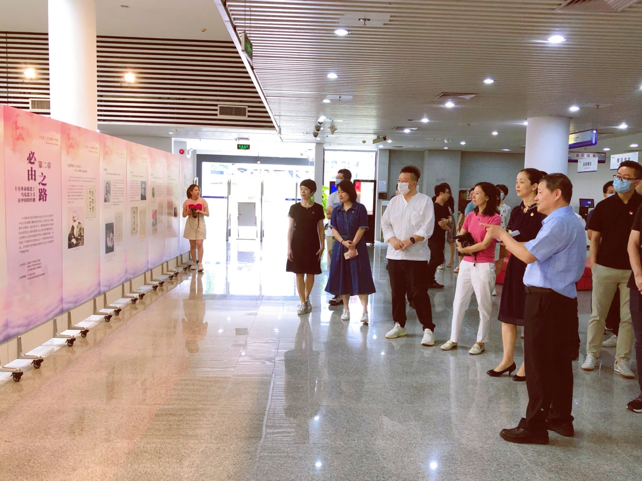 開幕式后,圖書館兩個支部的黨員和部分同學共同觀展,傾聽講解。大家回顧了馬克思主義在中國早期傳播波瀾壯闊、艱難曲折的歷程,深切感受到中國共產黨人探尋救國之道的堅定信念、不懈追求和勇往直前的精神。大家紛紛表示,要深入學習黨史,傳承紅色基因,賡續共產黨人精神的理想信念,牢記初心使命,凝心聚力,以優異的成績慶祝建黨100周年。