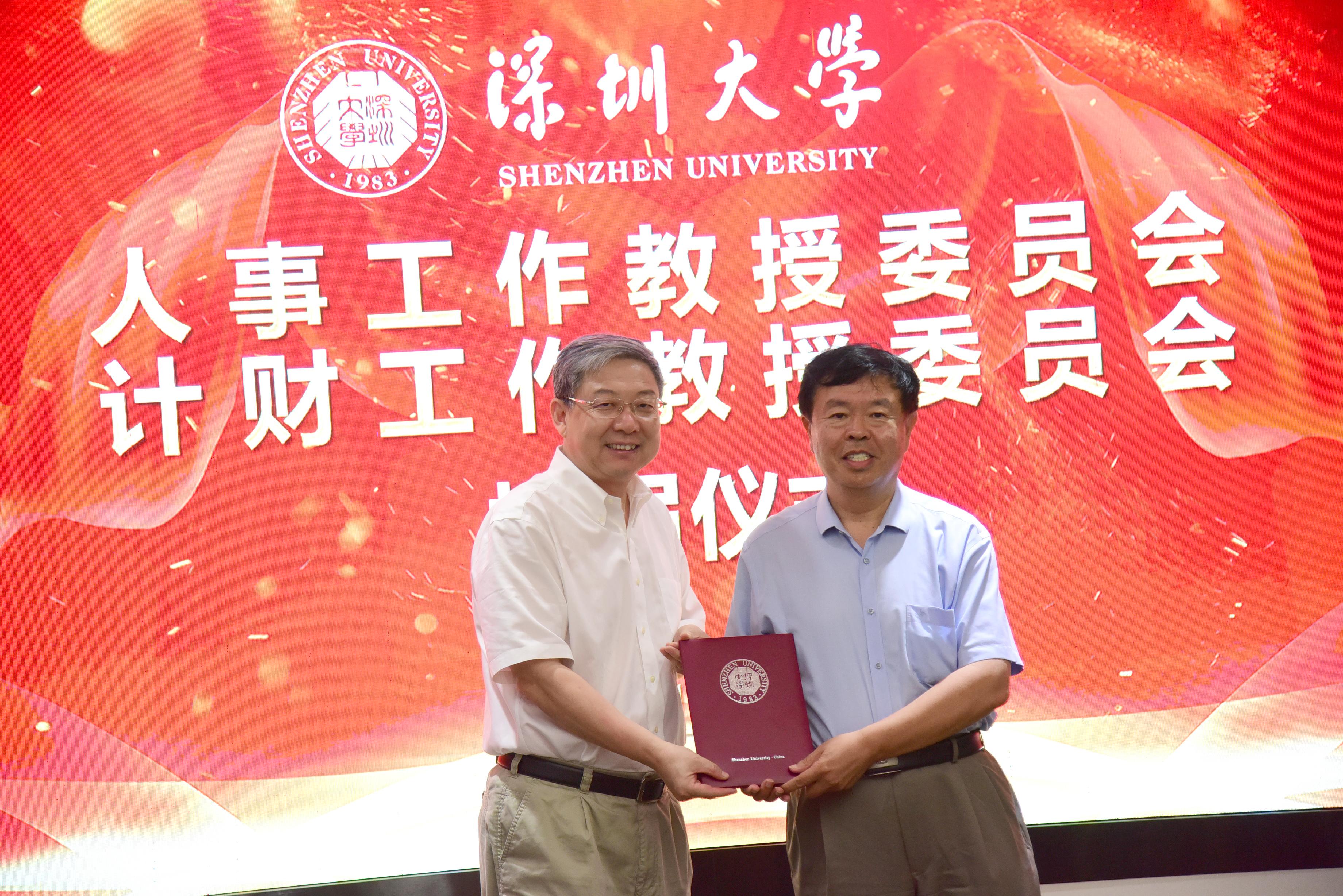 會上還宣讀了《關于成立深圳大學第五屆人事工作教授委員會的通知》和《關于成立深圳大學第五屆計財工作教授委員會通知》,第四屆人事、計財工作教授委員會任期屆滿,進行換屆。第五屆人事工作教授委員會選舉黃哲學教授為主任、丁南教授為副主任,成員包括王雙印、牛奔等11名教授;第五屆計財工作教授委員會選舉蔡元慶教授為主任、郭金川教授為副主任,成員包括馬利軍、鄧旭峰等11名教授。李清泉向第四屆成員頒發(fā)紀念品,向第五屆新成員頒發(fā)聘書。