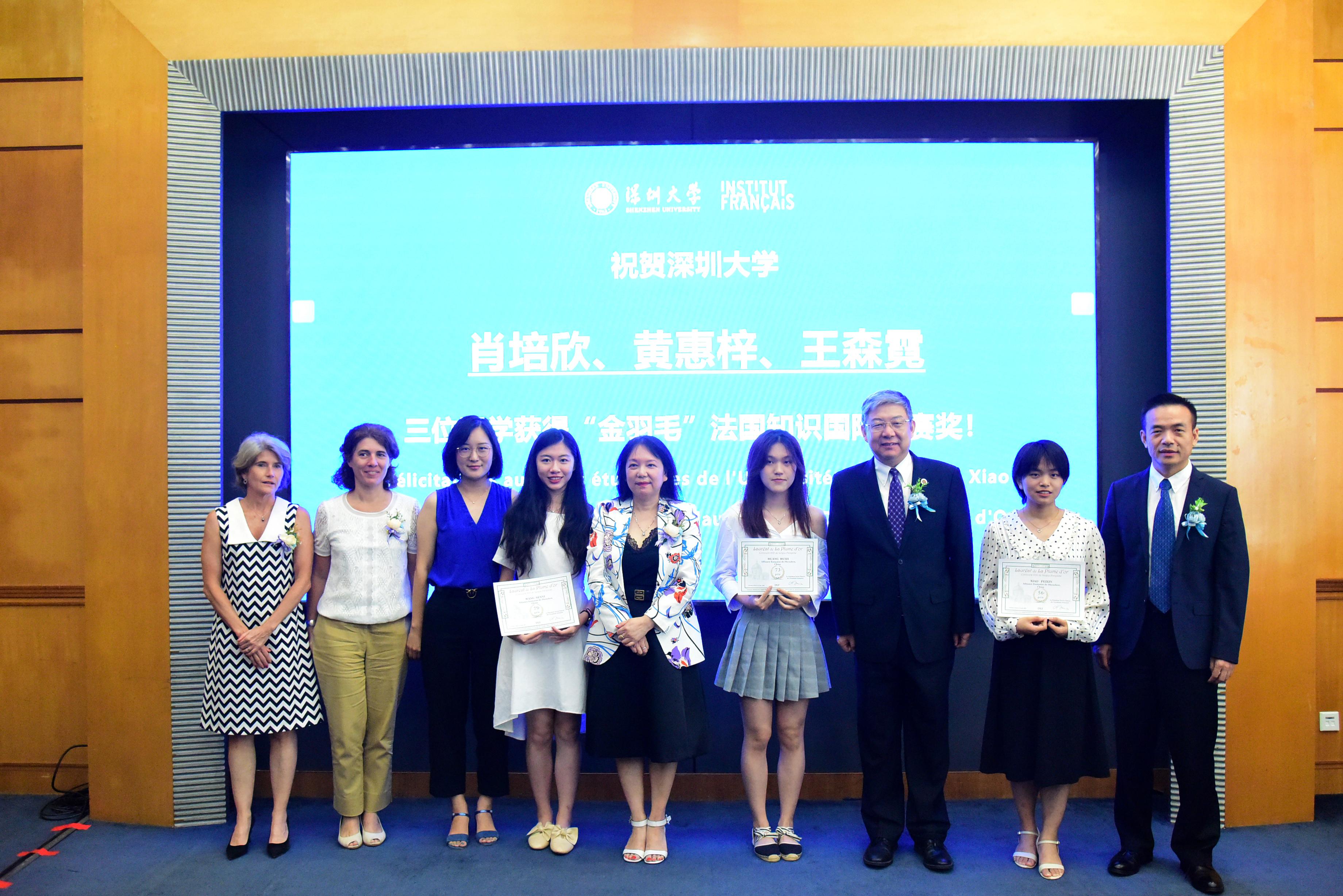 隨后,李清泉和周麗君共同為金羽毛法國知識國際競賽獲獎學生頒獎。深圳大學外國語學院法語專業學生用流利的法語對法國客人表示歡迎,并表示一定不辜負學校和老師的培養與期望,將以更飽滿的熱情投入到未來的學習和工作中。