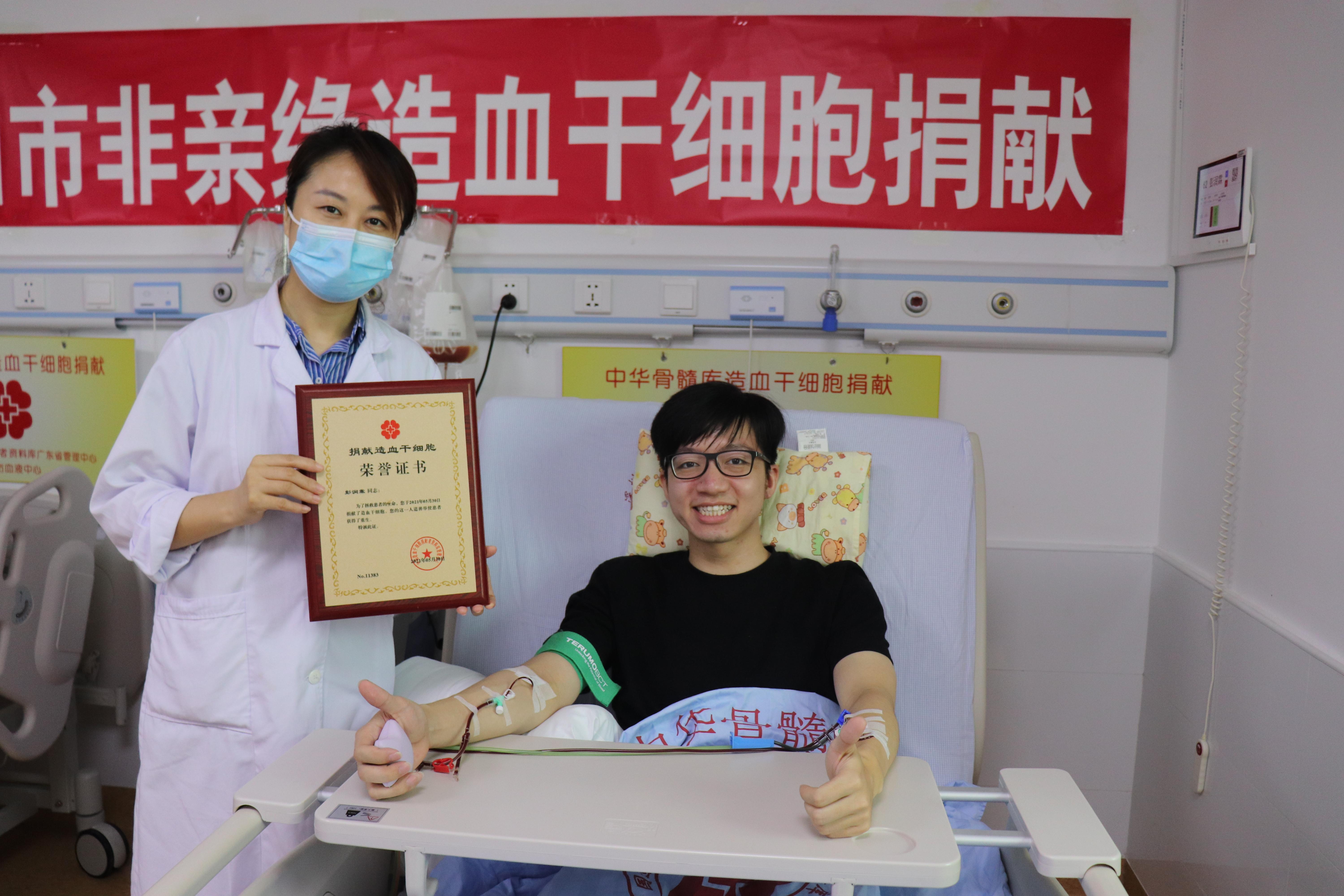 彭潤霖、黎金山、孫國強(qiáng)都是深圳大學(xué)的在校生,也都是造血干細(xì)胞的捐贈(zèng)者。5月30日上午,深圳大學(xué)機(jī)電與控制工程學(xué)院彭潤霖同學(xué),與一位患有白血病的農(nóng)民父親骨髓匹配成功,捐贈(zèng)了造血干細(xì)胞懸浮液267毫升。時(shí)隔半月,6月18日,深圳大學(xué)經(jīng)濟(jì)學(xué)院碩士研究生黎金山同學(xué)為一名患有地中海貧血癥的兒童捐獻(xiàn)了造血干細(xì)胞。7月2日,深圳大學(xué)傳播學(xué)院2020級(jí)專業(yè)碩士研究生孫國強(qiáng),成功為廣州某位中年男性白血病患者捐獻(xiàn)造血干細(xì)胞280毫升。彭潤霖、黎金山、孫國強(qiáng)三人也成為繼梁群老師、王凱民同學(xué)、馬佳智同學(xué)之后,第四、五、六位成功捐獻(xiàn)血液干細(xì)胞的“深大人”。